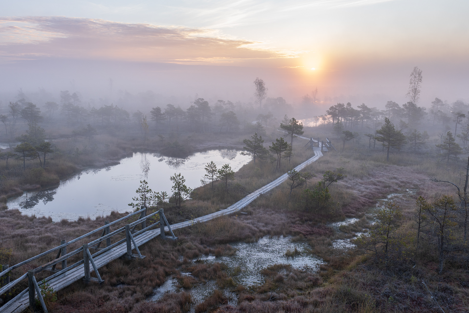 Through the changing seasons, Kemeri Bog tells a story of light, color, and silence. In spring, it awakens with tender green; in summer, it glows with warmth and life. Autumn brings subtle shades of amber and fading light, while winter wraps it in calm, white stillness. This collection of photographs invites you to see how the same landscape transforms, yet always remains the same — timeless and full of quiet beauty.